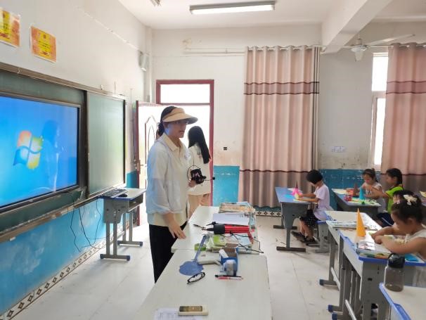 7月21日,团队正式抵达杜庄小学,全体成员紧锣密鼓地投入支教工作。在正式展开教学任务前,实践团队与杜庄小学开展了地区教育资源调研座谈会。香港六合彩资料网 团委书记李智通与杜庄小学校长尹辉昌就往期合作回顾、支教教学内容、未来合作发展等进行了深入交流。通过校长的讲述,实践团队员们了解到,目前村小学在教育硬件设施供给、师资人才选拔调派、教育资金集中投入等方面仍有亟待解决的问题,在多所村小学大规模合并的“交岔路口”,学生需求始终不可忽视,地区范围内的村小学尤其需要青年骨干师资力量助力发展。实践团的到来切实提升了村小学课程开展的多样化程度,为进一步拓宽学生的感知力、提升对知识的崭新认知提供了极大的帮助。